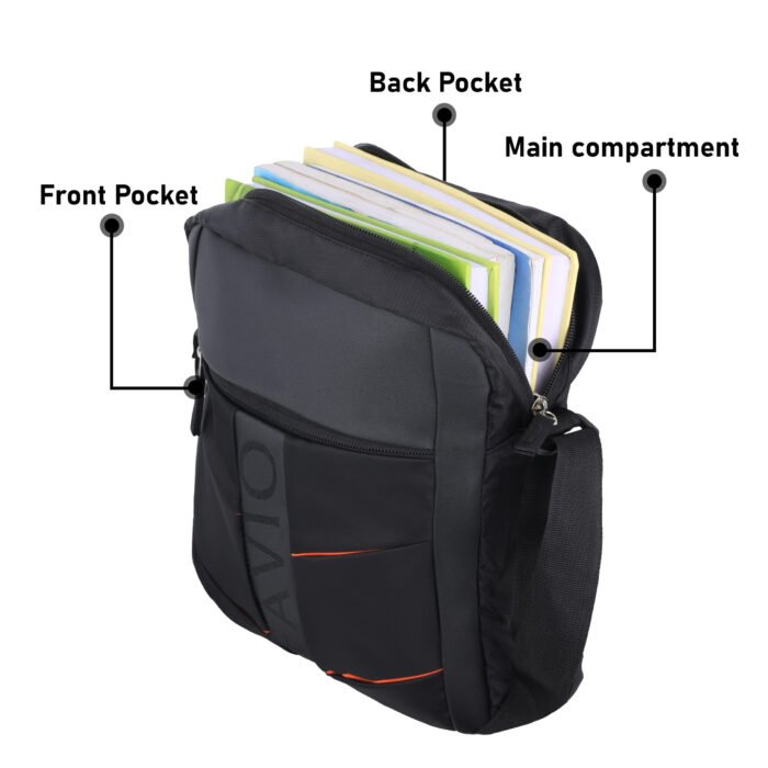 Stay stylish and organized with this sleek black sling bag from Favio. Designed with durable fabric and accented with subtle orange details, it features a front zip pocket, spacious main compartment, and an adjustable padded shoulder strap for all-day comfortāperfect for work, travel, or daily use.
