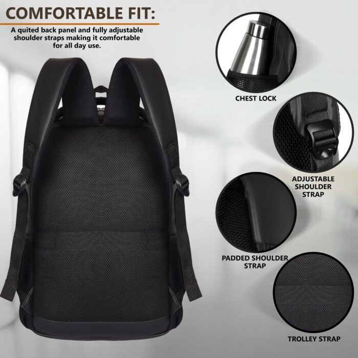 Whether you’re heading to the office, college, gym, or your next travel destination, this FAVIO backpack is your perfect companion. Featuring a sleek exterior with textured paneling, it combines a fashionable design with practical features. The spacious interior includes a dedicated padded laptop compartment that fits up to 15.6-inch laptops, an organizer section for pens and essentials, a front zipper pocket for easy access, and dual side mesh pockets for water bottles or small accessories. Built for comfort, it features adjustable padded shoulder straps, a quilted back panel, chest lock for added support, and a trolley strap that slides over luggage handles for easy airport travel. Whether you’re commuting to work or planning a weekend trip, this backpack ensures you stay organized, comfortable, and on-trend.